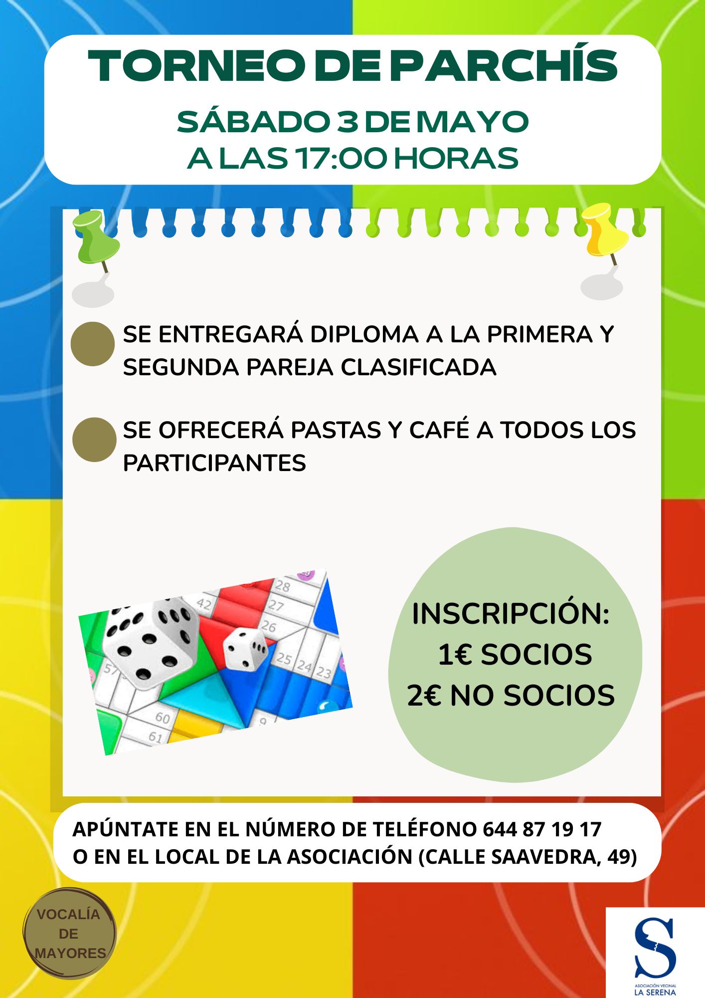 La Vocalía de Mayores de la Asociación Vecinal La Serena organiza un divertido torneo de parchís.