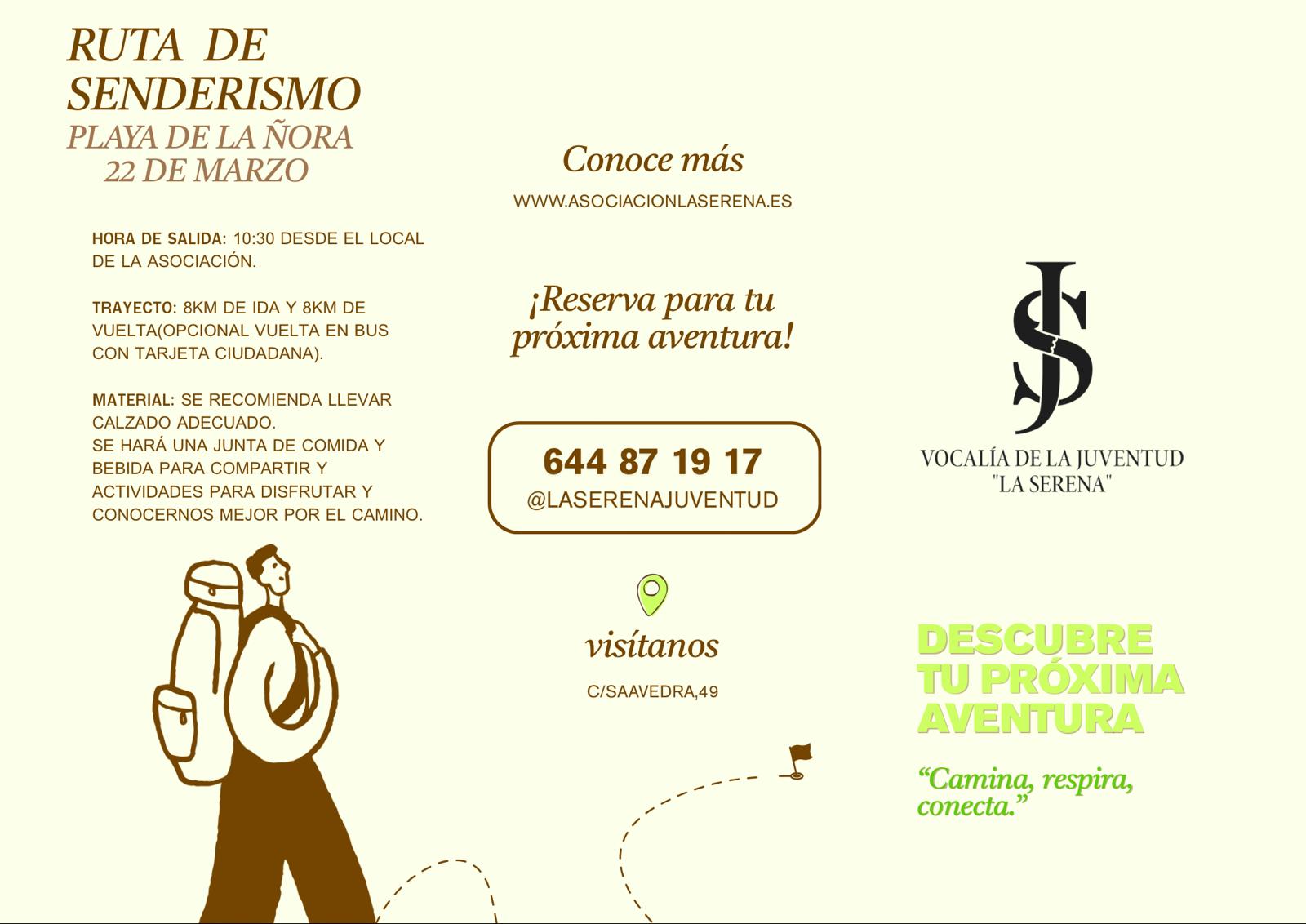 ¿Te apetece desconectar y disfrutar de la naturaleza? Te invitamos a una ruta de senderismo por la increíble Playa de la Ñora. 🗓 Fecha: Domingo, 22 de marzo. ⏰ Hora de salida: 10:30 desde nuestro local. Detalles de la ruta: 📍 Salida: C/ Saavedra, 49. 🚶 Recorrido: 8km ida / 8km vuelta. 🚌 ¿Cansad@? No te preocupes, tienes la opción de volver en bus pagando con la Tarjeta Ciudadana. No olvides llevar calzado cómodo y muchas ganas de pasarlo bien. Haremos una parada para comer todos juntos, así que anímate a…