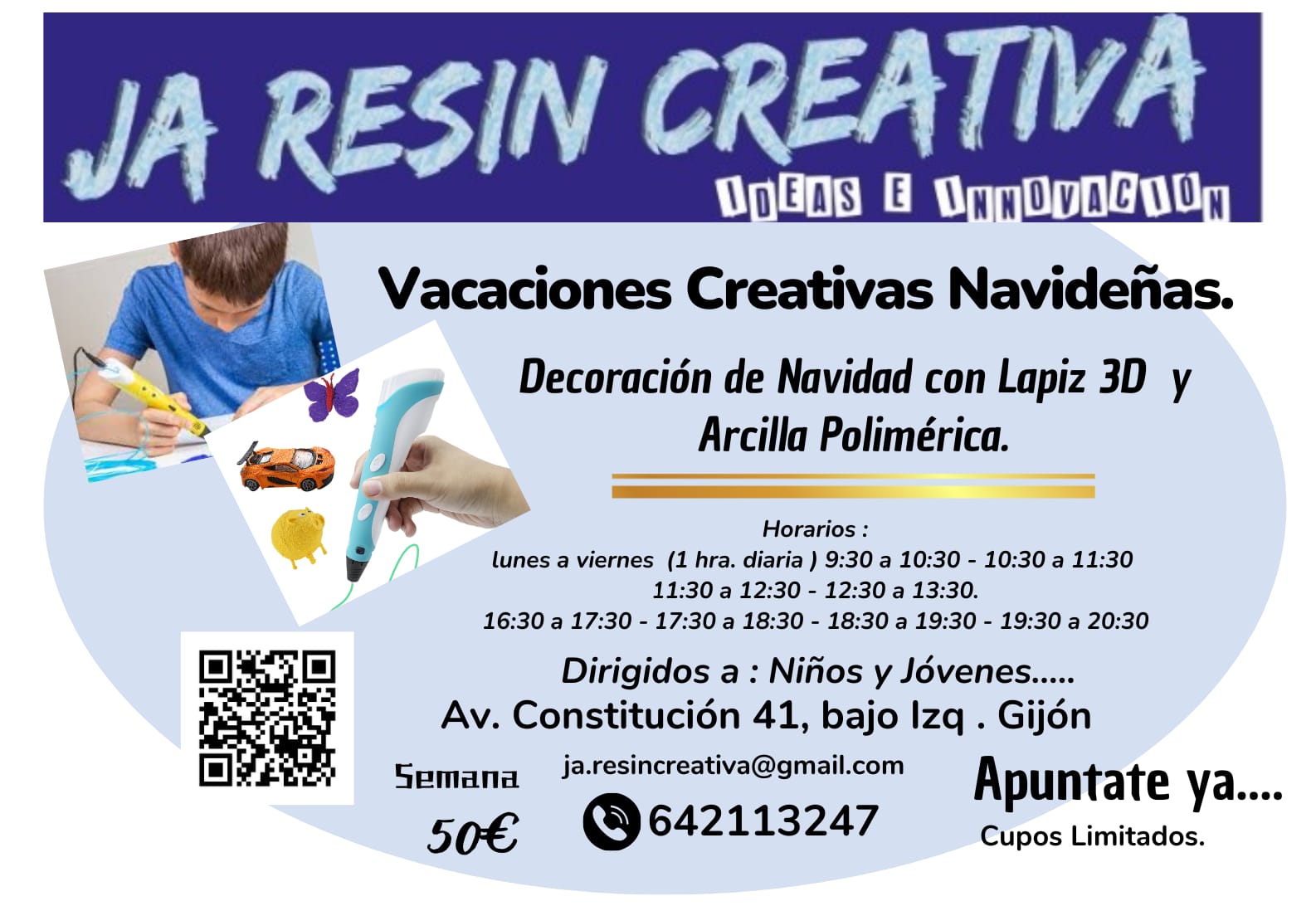 Te invitamos al Taller de Decoración Navideña con Lápiz 3D y Arcilla Polimérica, impartido por JA Resin Creativa: Ideas e Innovación.
