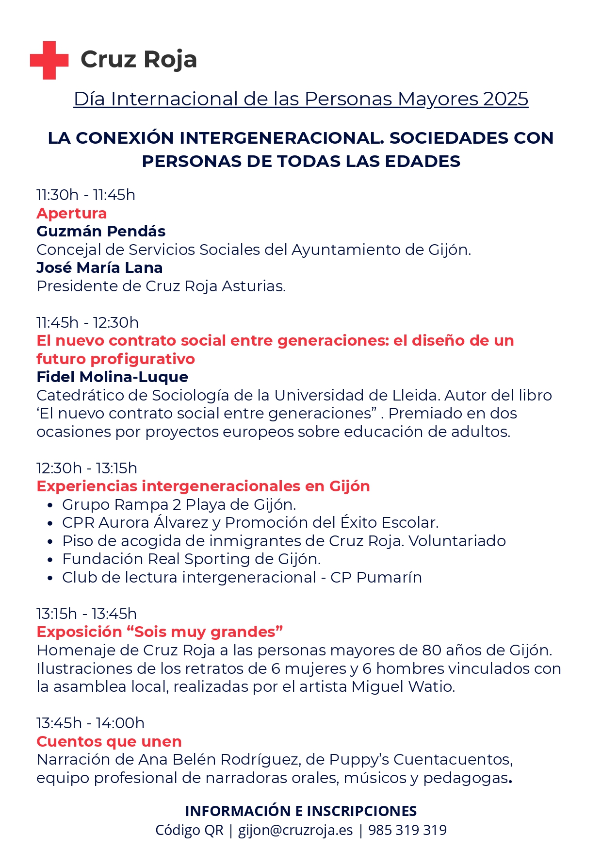Con motivo del Día Internacional de las Personas Mayores, Cruz Roja Asturias organiza la Jornada: